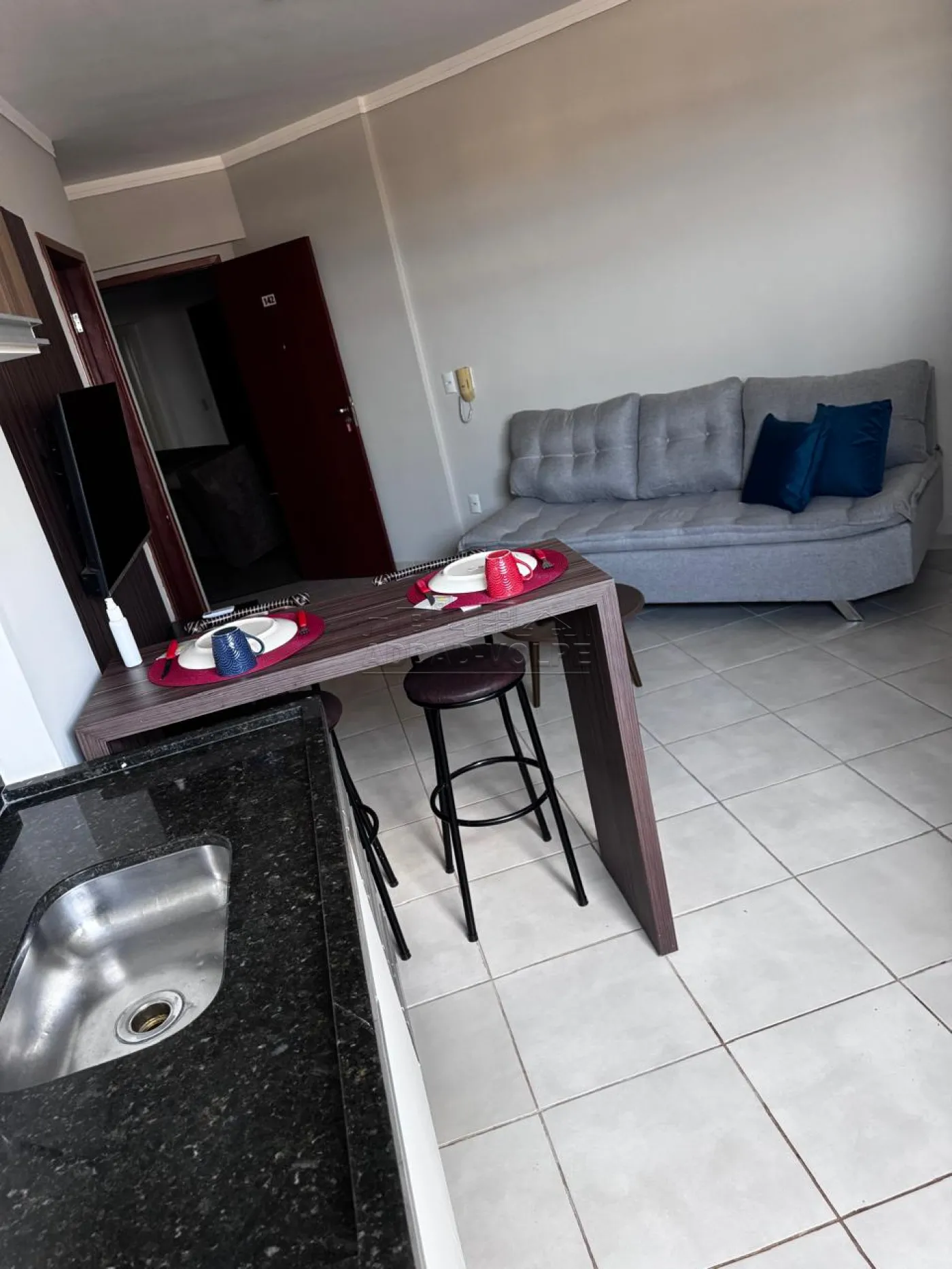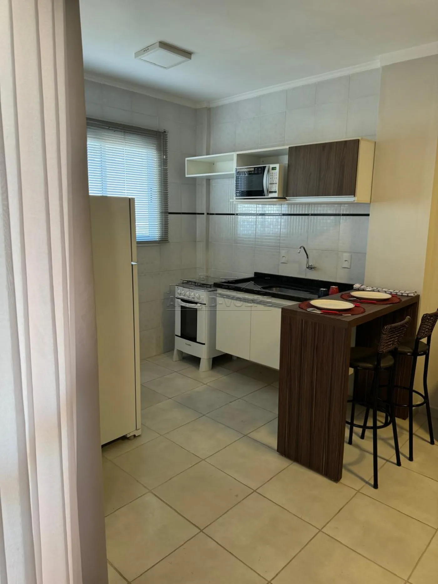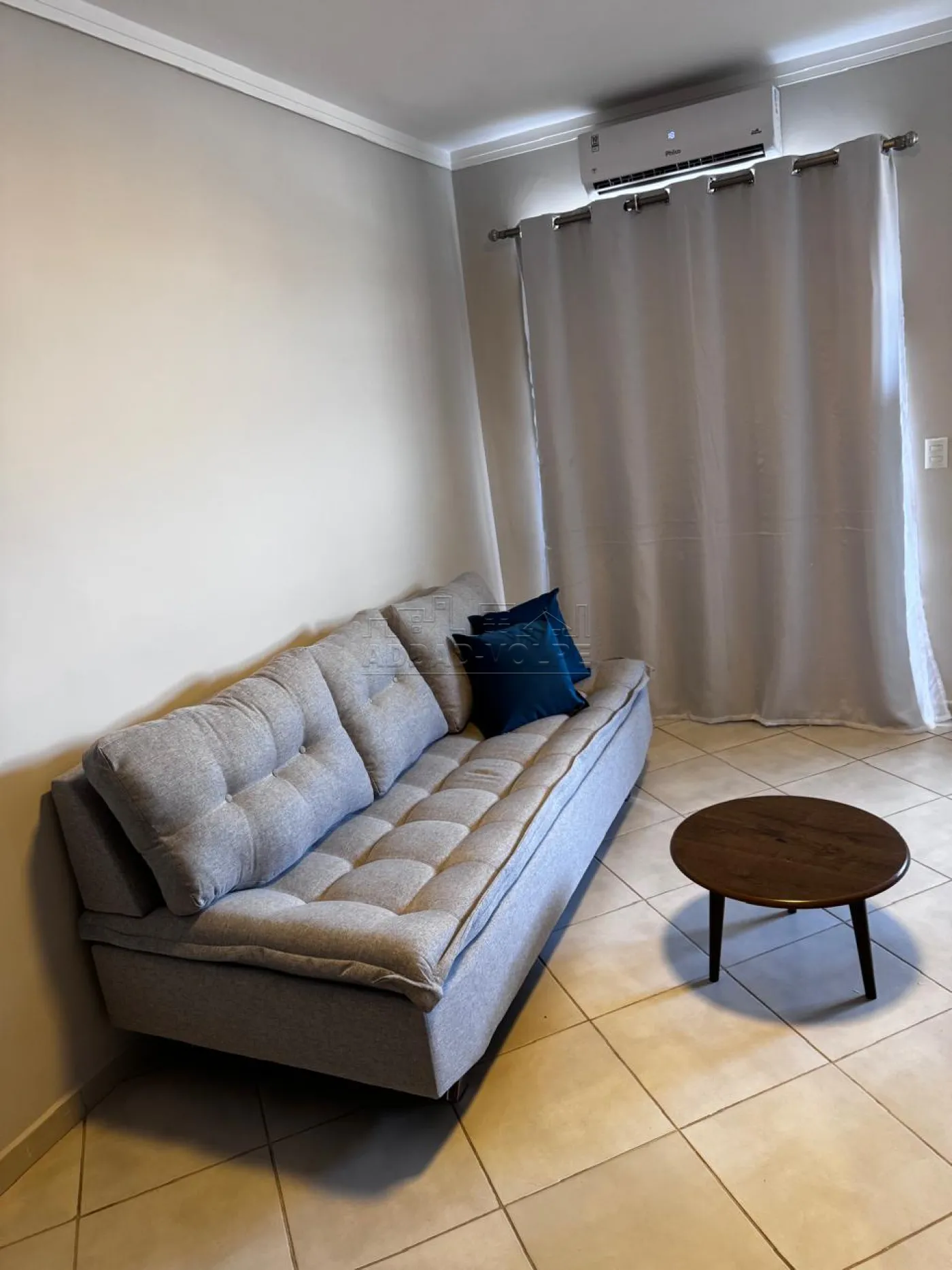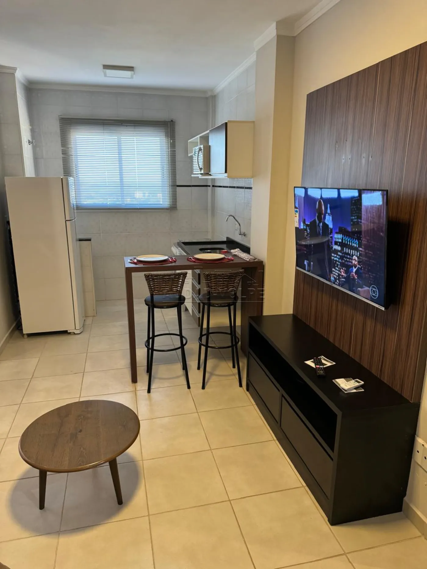 1 dormitório, sala de estar, cozinha, área de serviço, ar-condicionado.