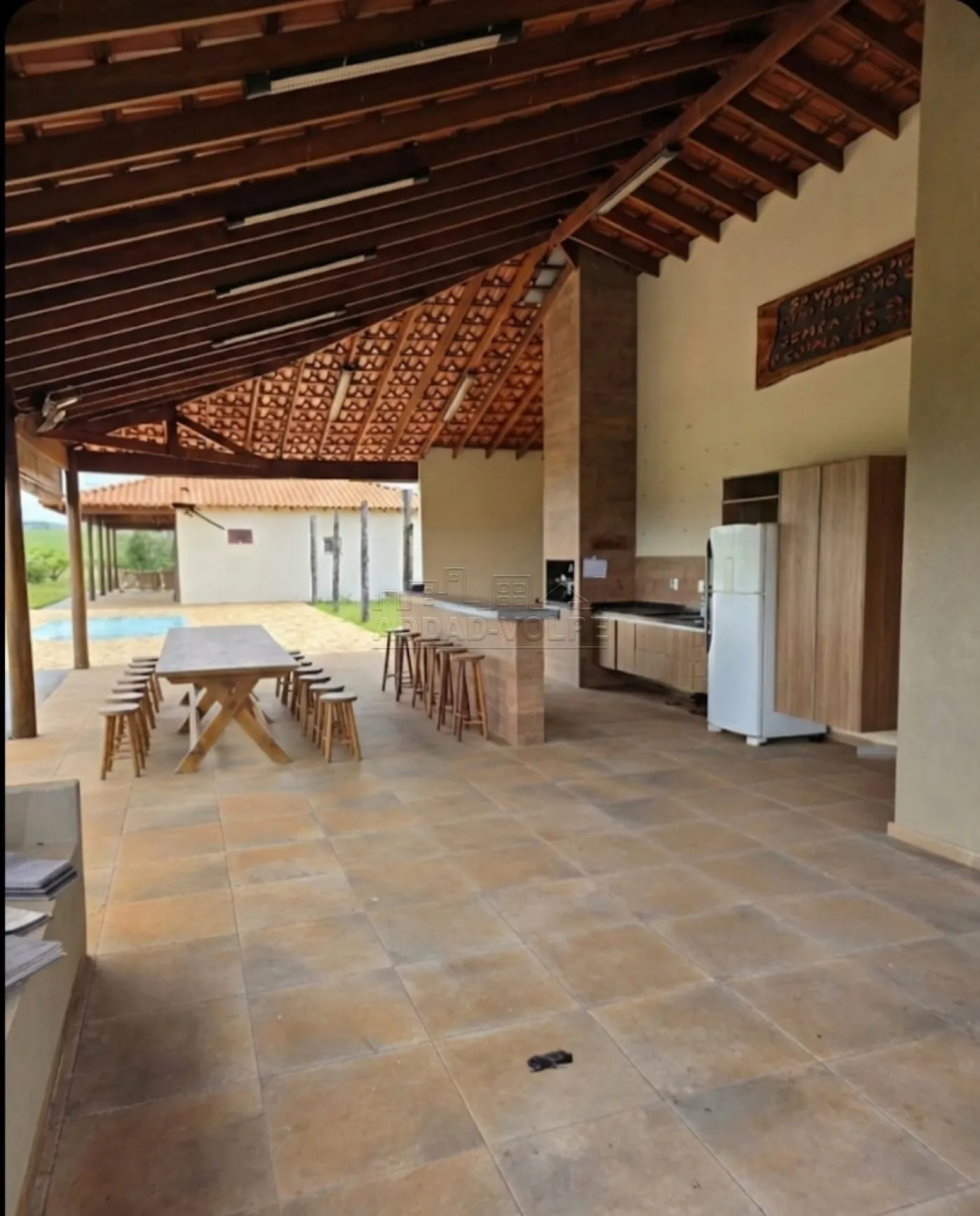 Quiosque com 1 lavanderia, 1 cozinha, 1 sala.