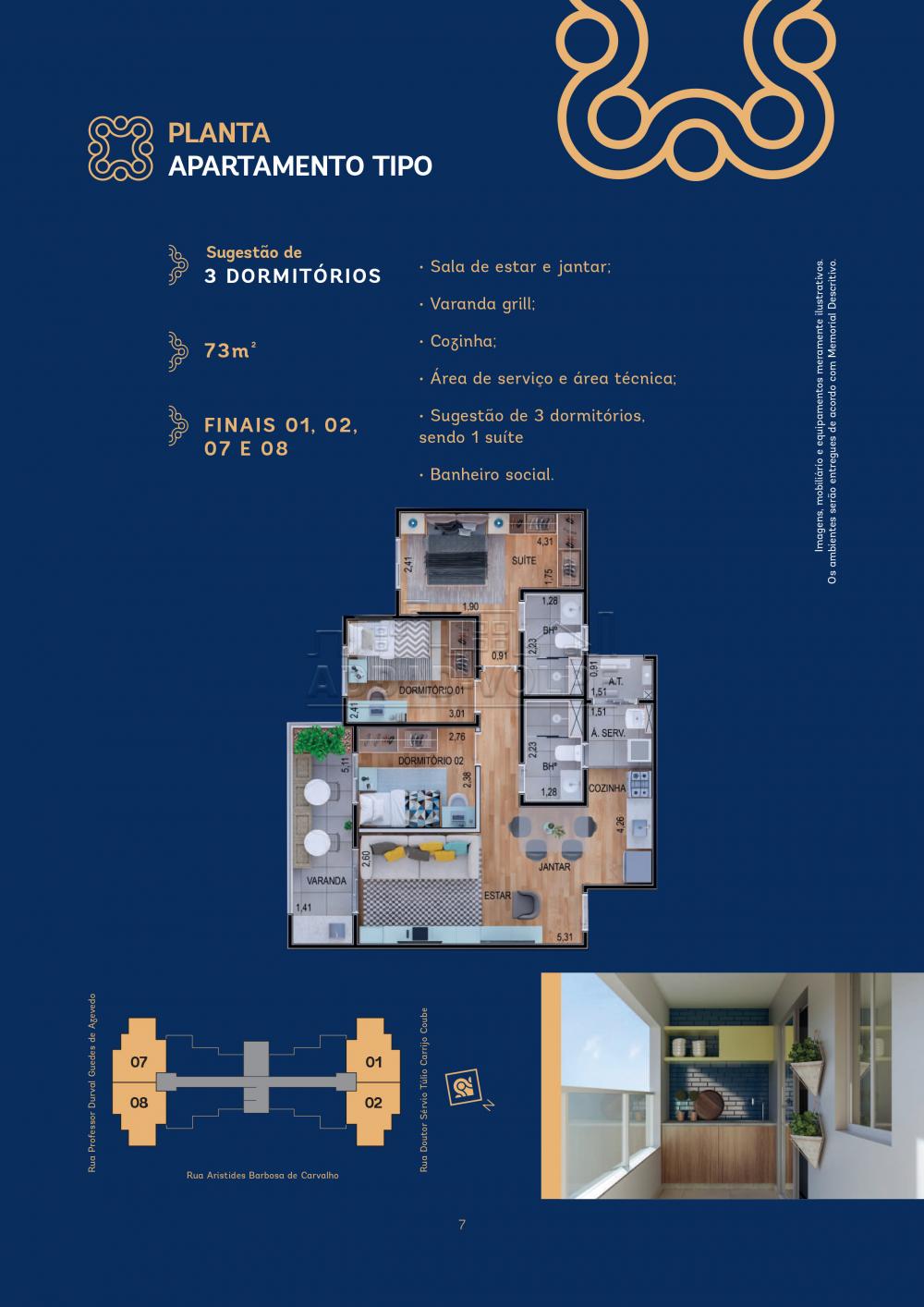 62m 2 Dormitórios Sala integrada, varanda grill, cozinha, área de serviço, 2 dorms 1 suíte, banheiro social