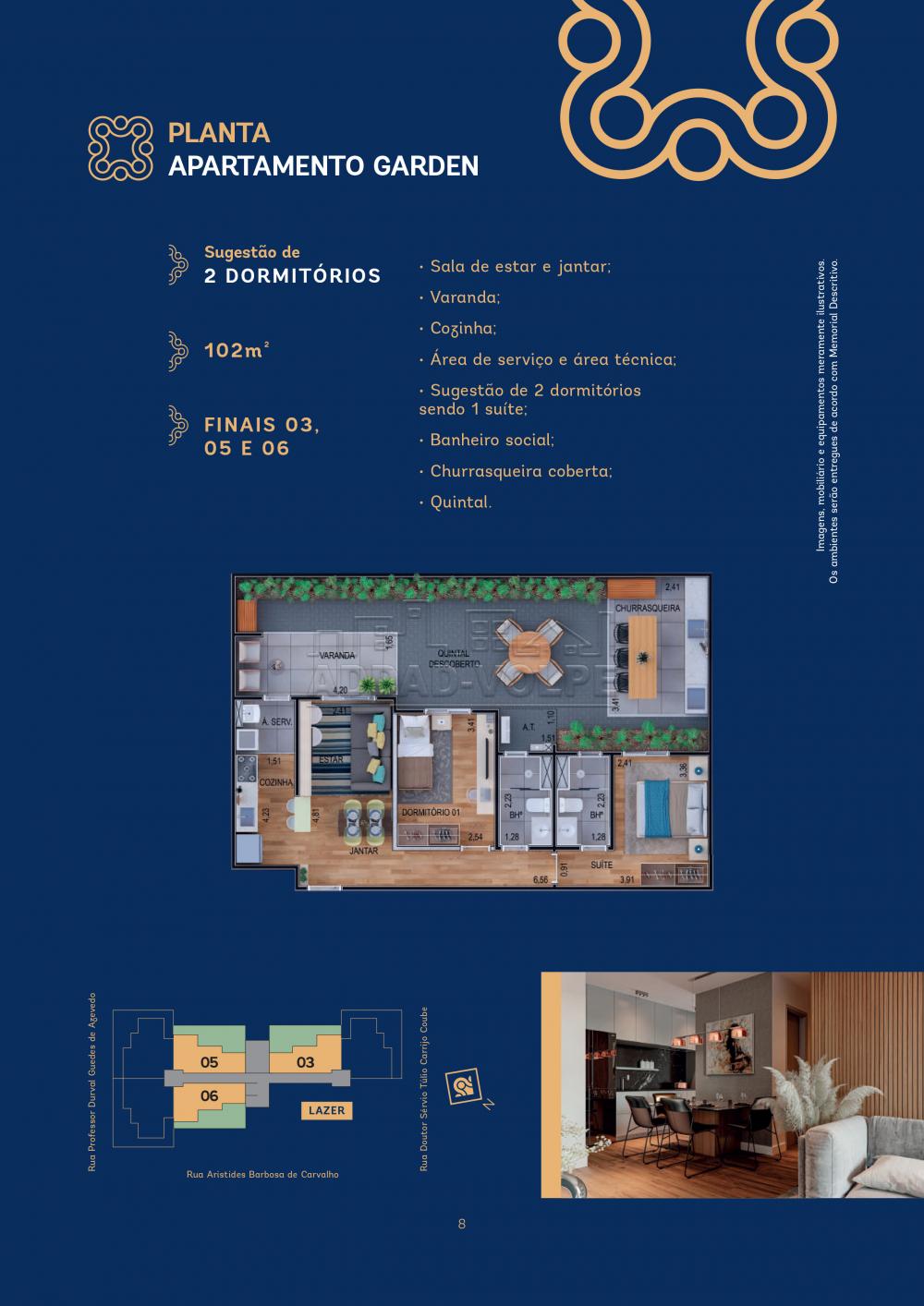 Configurações Disponíveis Apartamentos tipo de 62m 2 dorms e 73m 3 dorms, Gardens de 102m 2 dorms e 132m 3 dorms