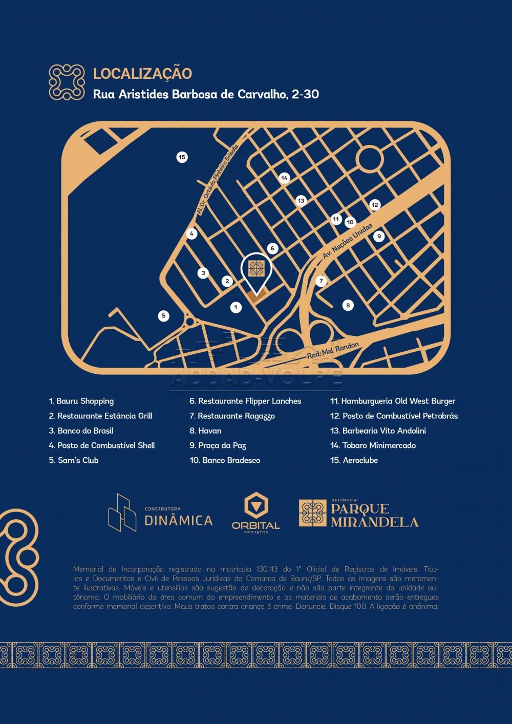 Situado na Rua Aristides Barbosa de Carvalho 2-30 no desejado bairro Parque Mirandela em Bauru SP, o Residencial Parque Mirandela coloca você próximo a pontos de referência como Bauru Shopping, Restaurante Estância Grill, Banco do Brasil, Posto Shell, Sams Club, Restaurante Ragazzo, Havan, Praça da Paz, Banco Bradesco, Hamburgueria Old West Burger, Posto Petrobras, Barbearia Vito Andolini, Tobaro Minimercado e Aeroclube. Esta posição estratégica, com acesso rápido à Avenida Getúlio Vargas, Rodovia Marechal Rondon, Rua Professor Durval Guedes de Azevedo e Rua Doutor Sérvio Túlio Carrijo Coube, garante mobilidade urbana e uma infraestrutura que acelera a valorização de apartamentos em construção em Bauru SP, perfeita para um lifestyle equilibrado e conectado.
