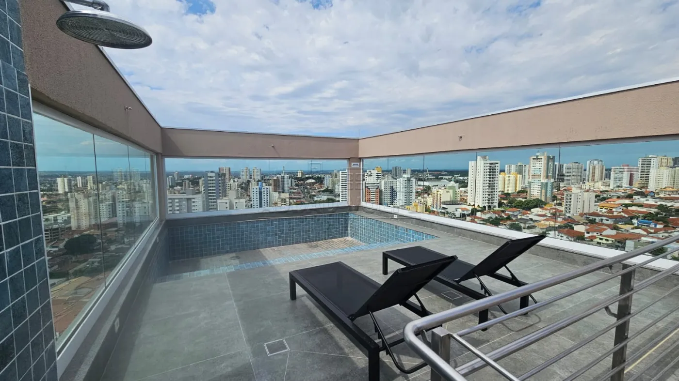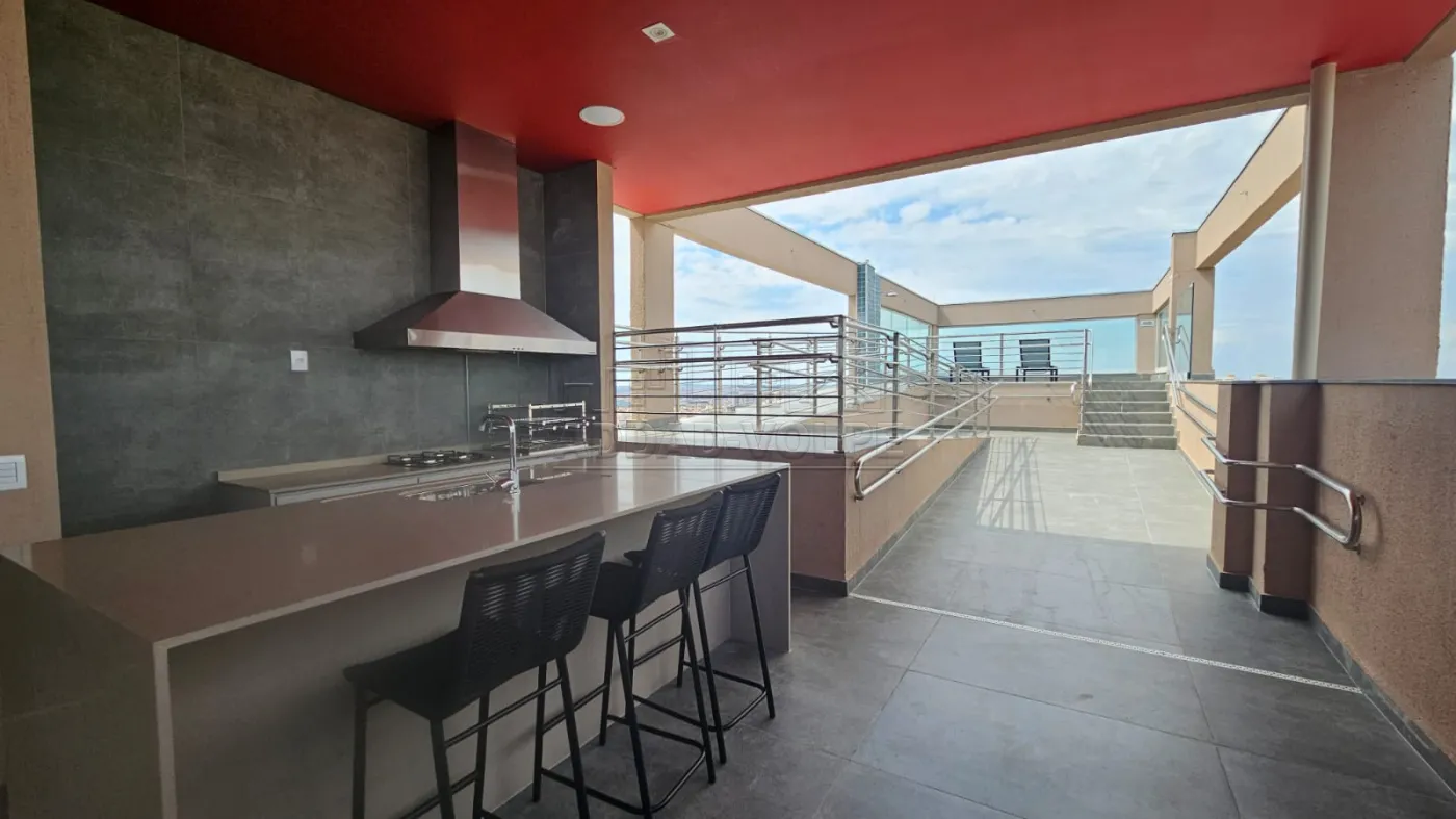 Lazer na cobertura com piscina e espaço gourmet.