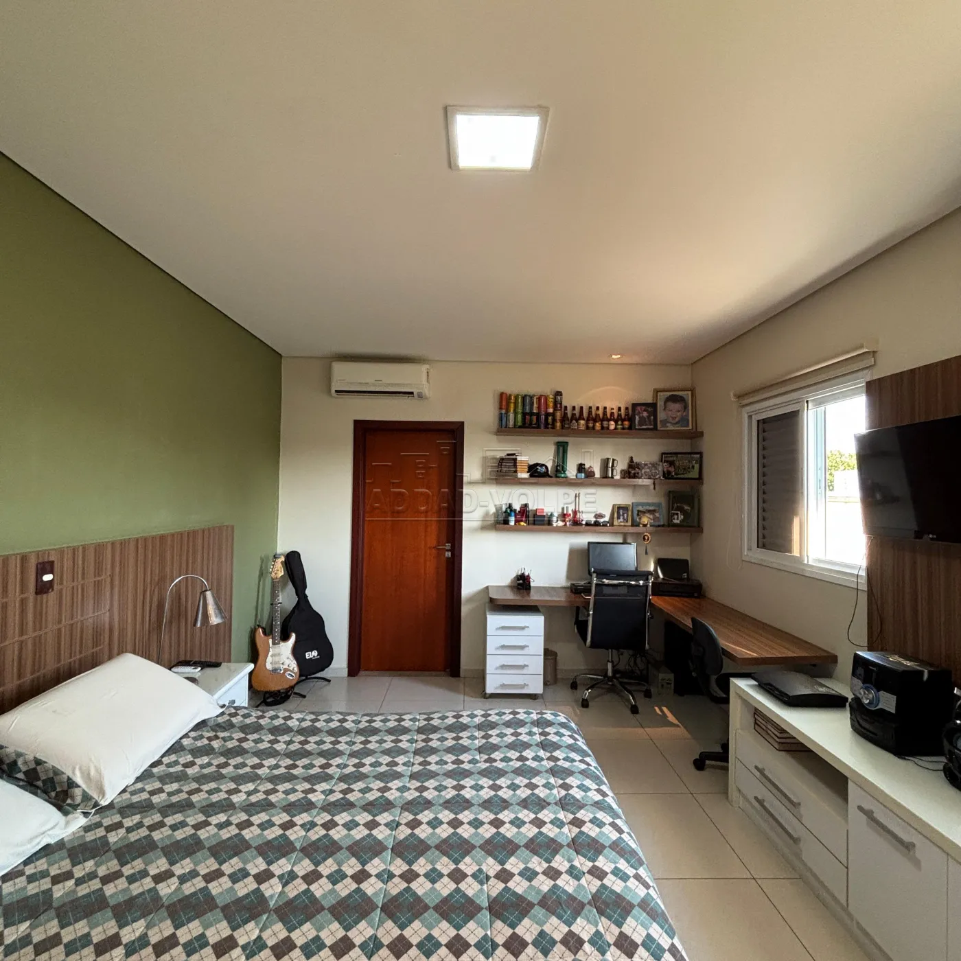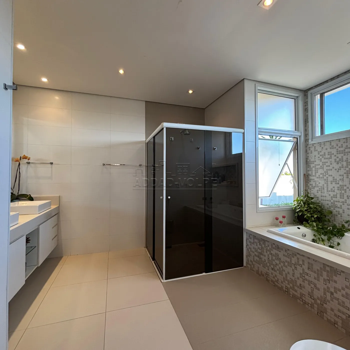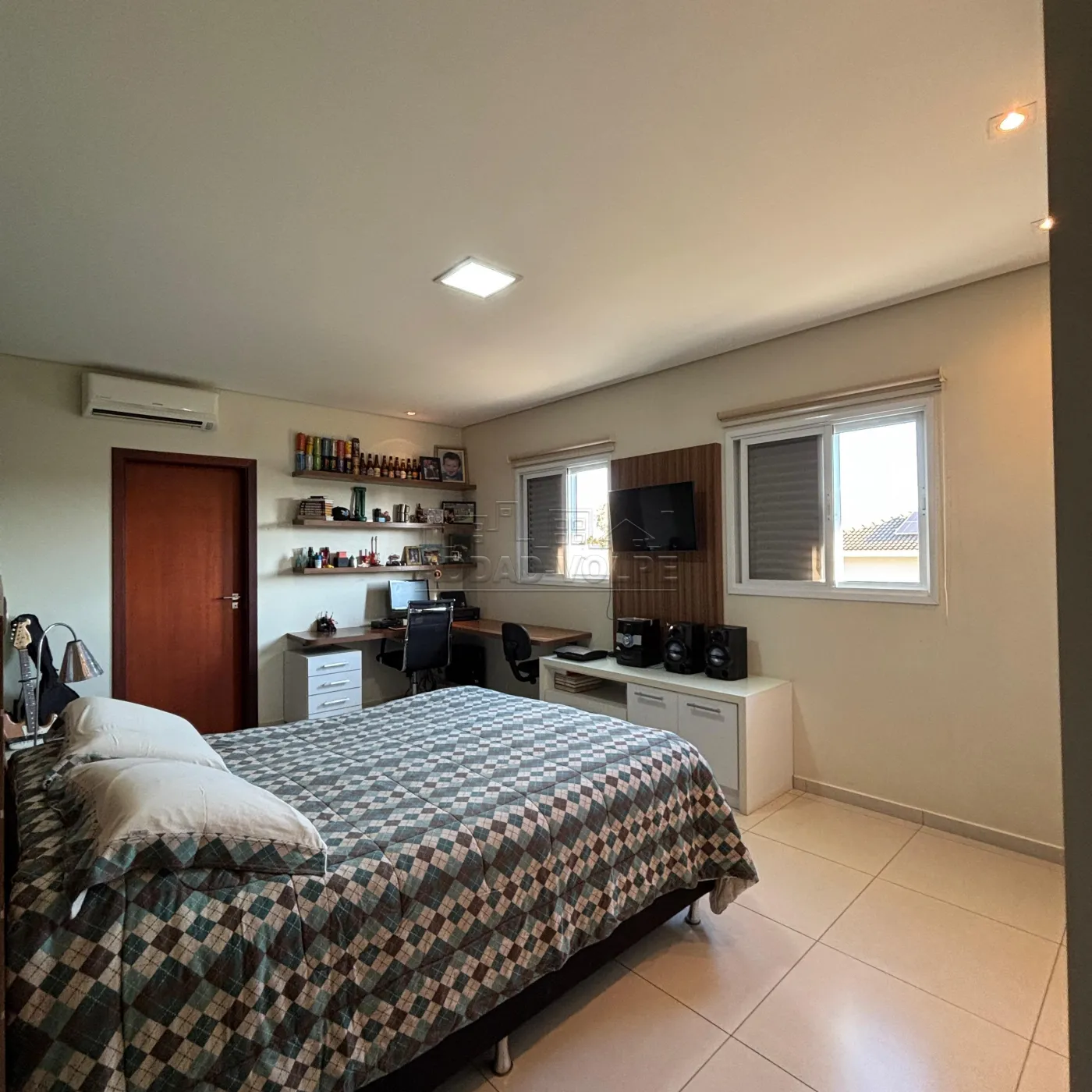 3 suítes, sendo 1 no térreo e 2 suítes na parte superior, sendo uma master com escritório, closet e WC com hidro.
