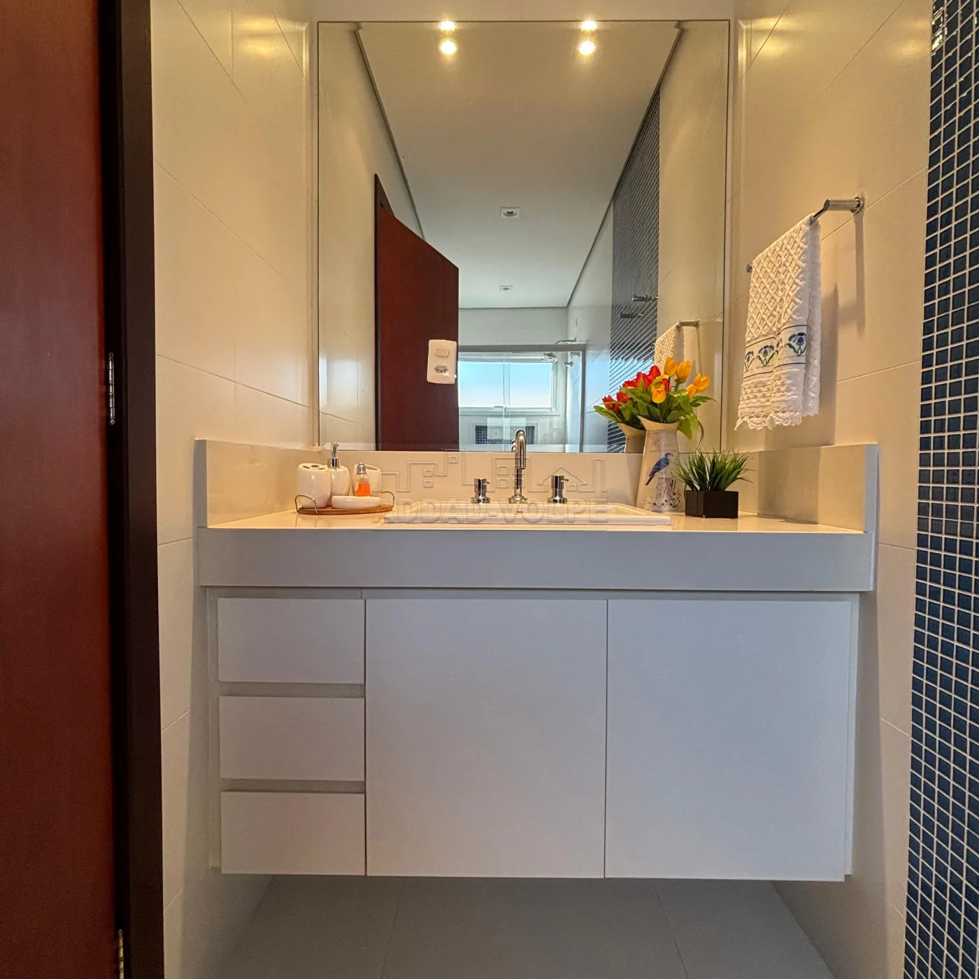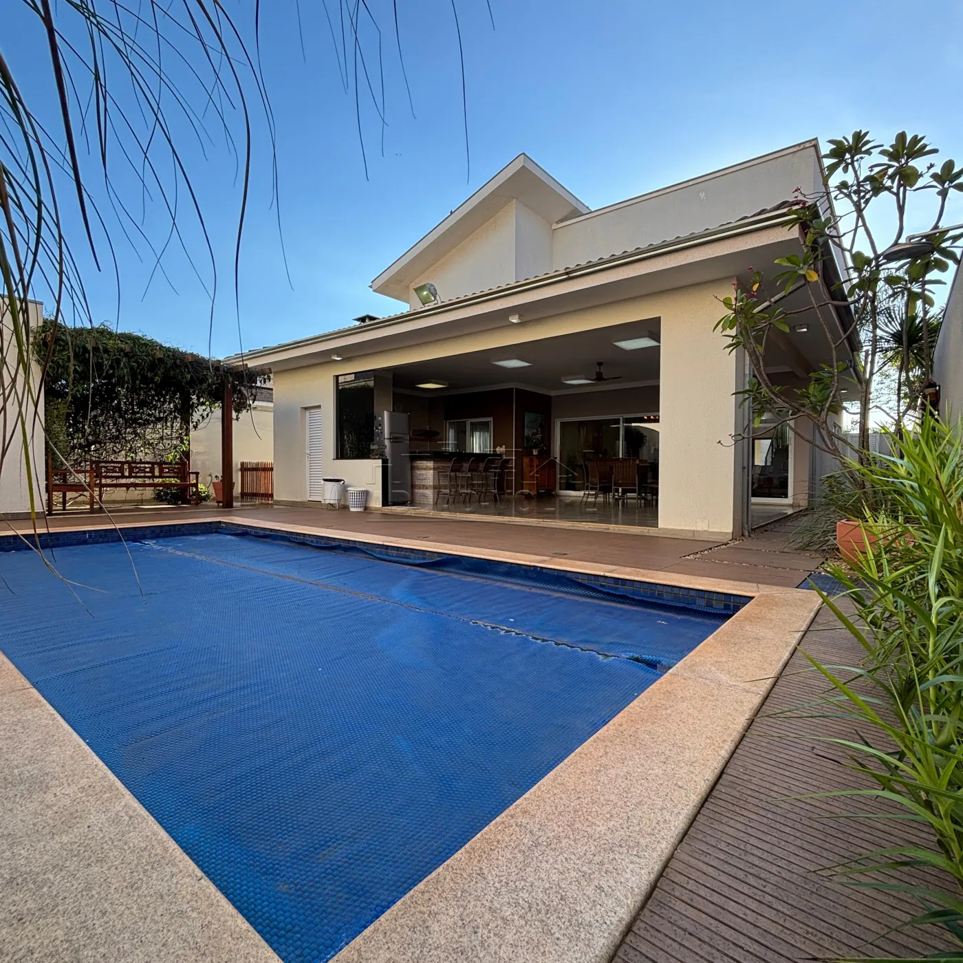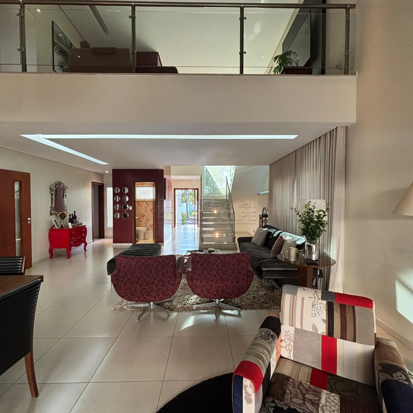 3 suítes, sendo 1 no térreo e 2 suítes na parte superior, sendo uma master com escritório, closet e WC com hidro.