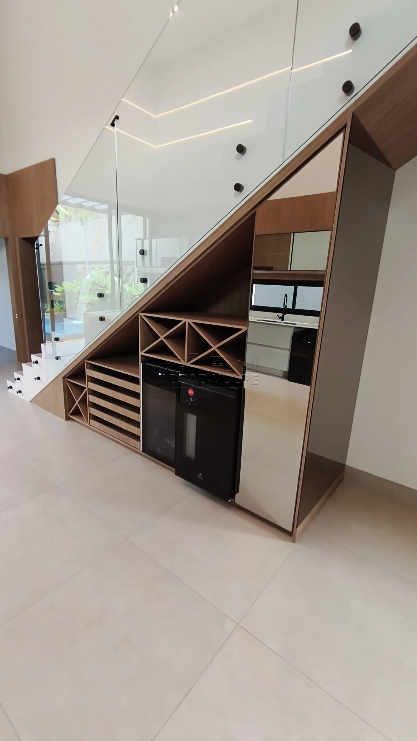 Possui mezanino com uma sala versátil que pode ser um escritório ou mais uma sala, ou reversível para mais uma suíte pois contém banheiro próprio no mezanino.