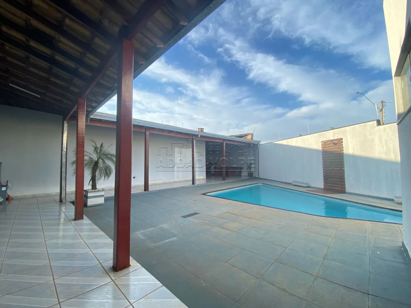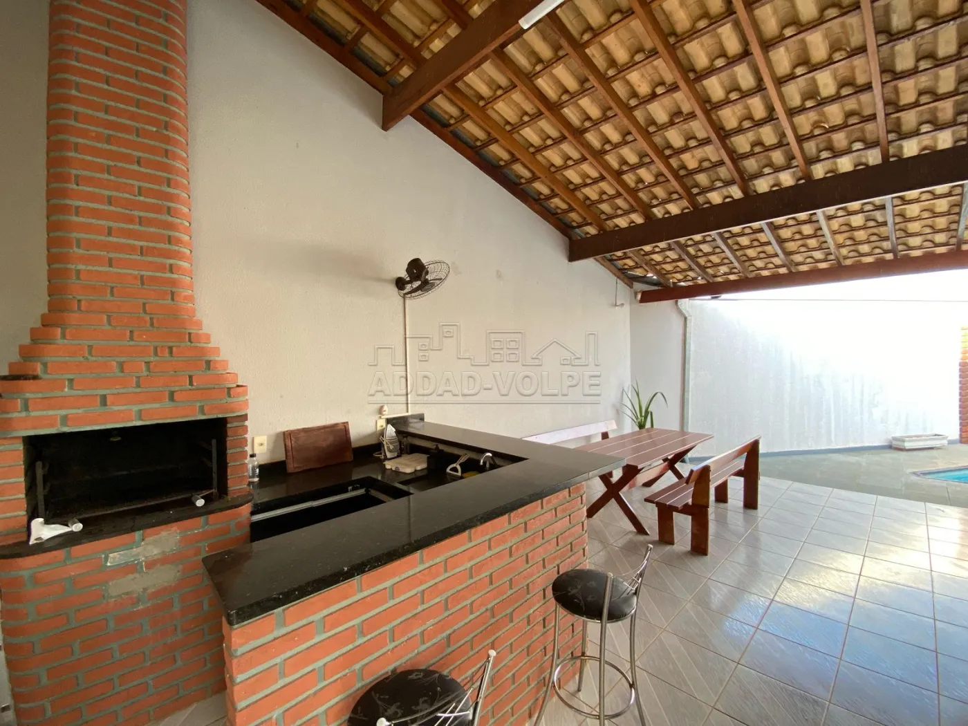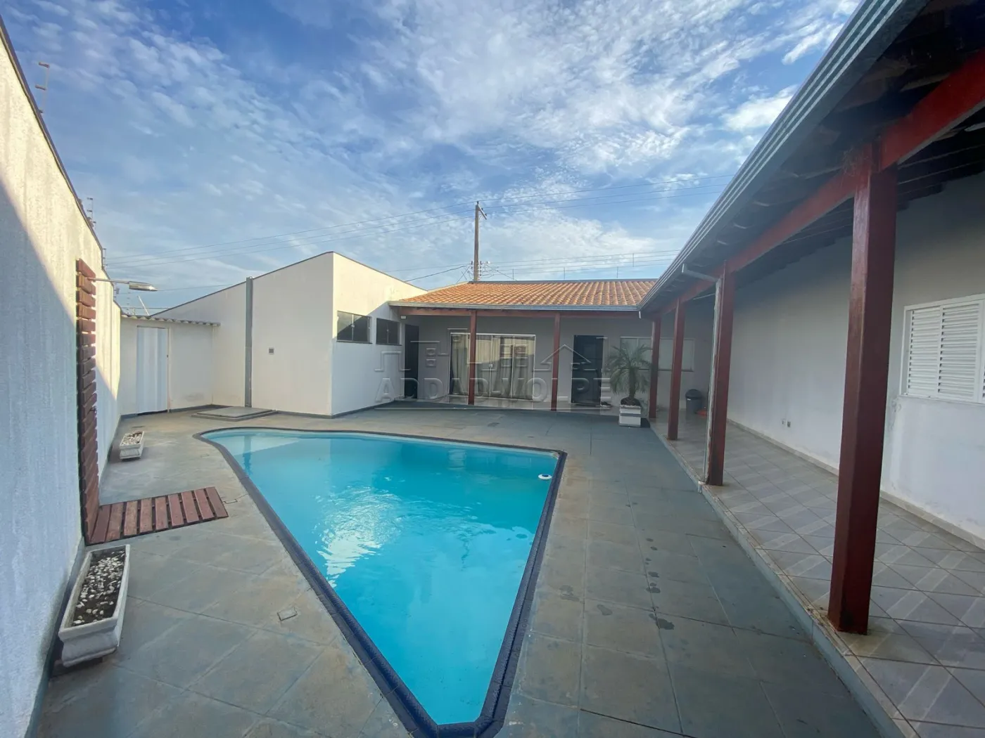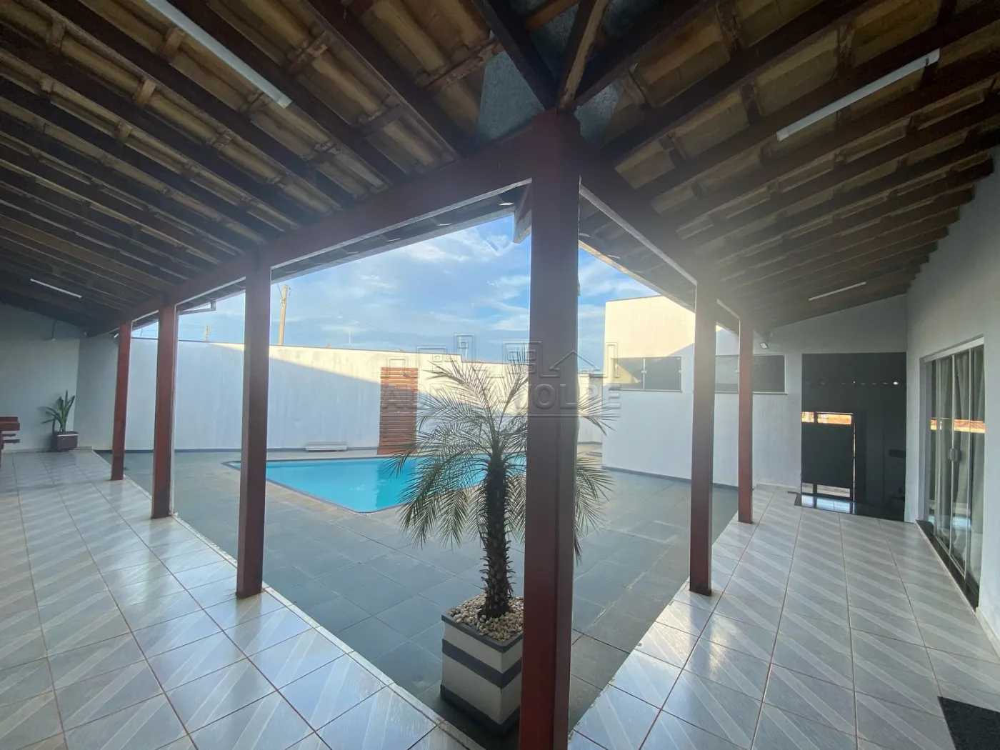 Casa toda avarandada, ampla área de lazer com churrasqueira e balcão, piscina.