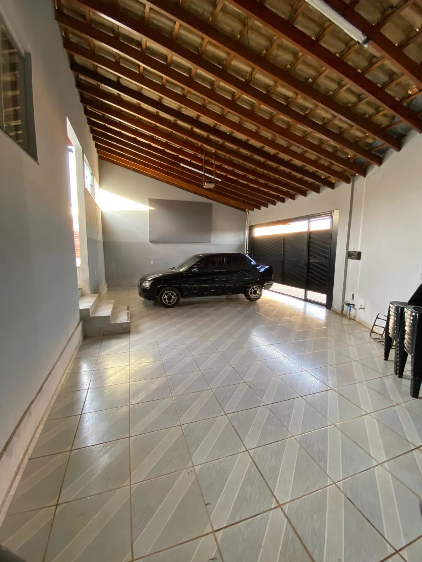 Garagem coberta para 3 carros.