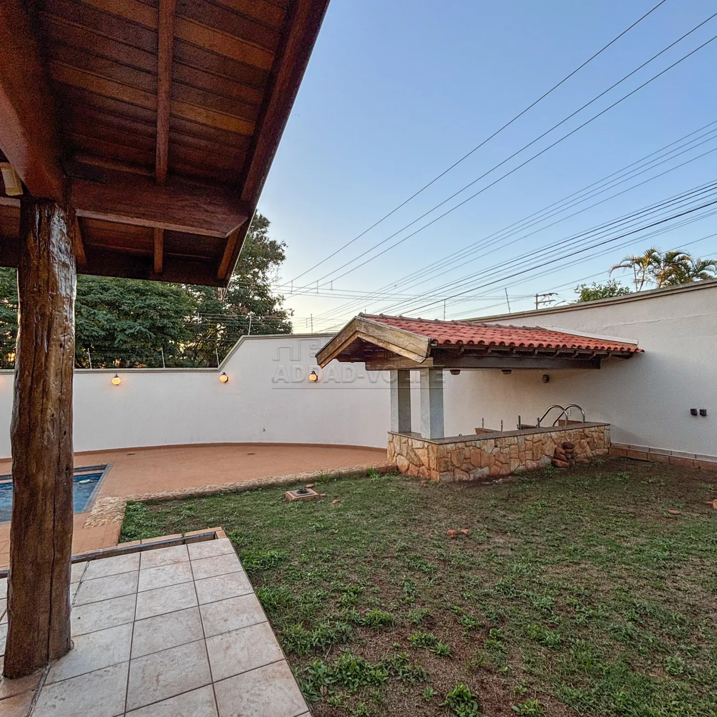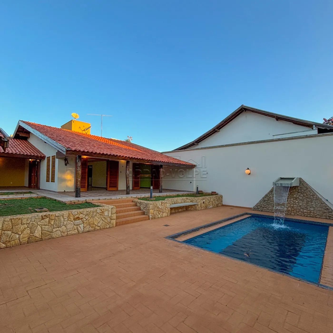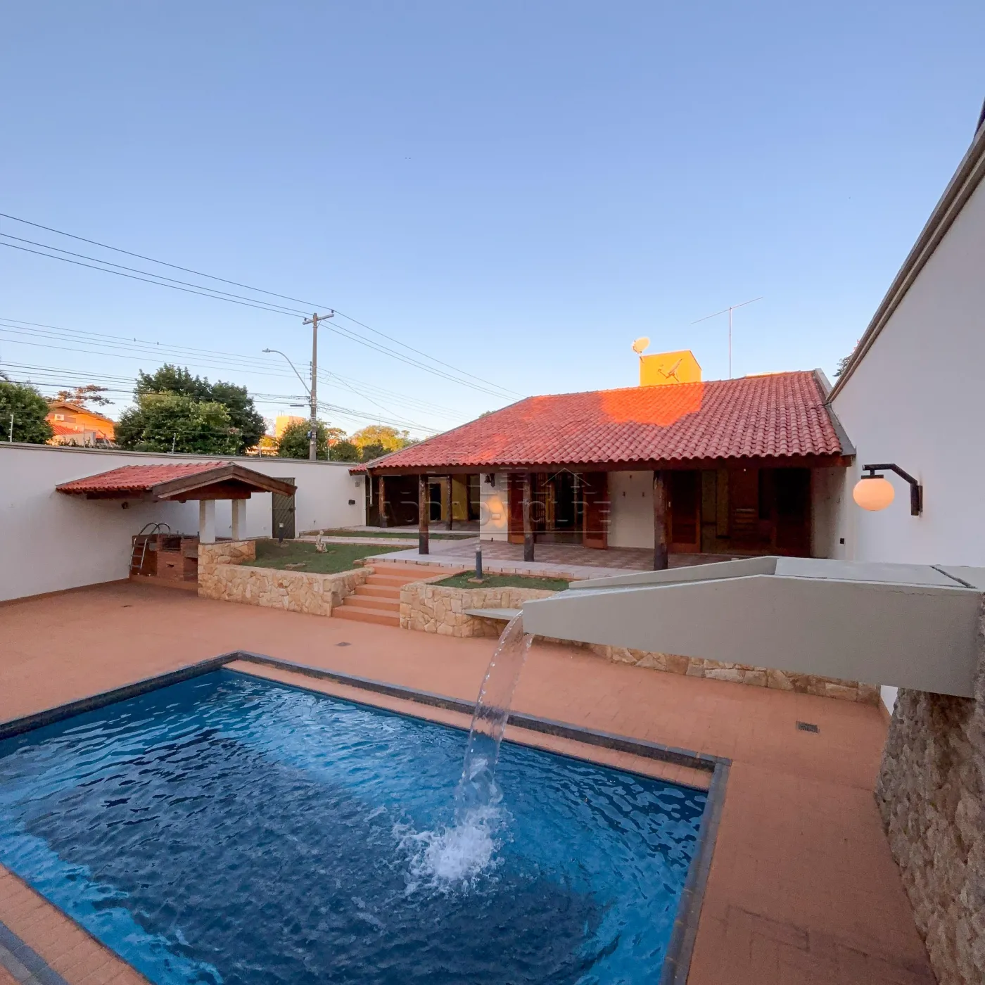 Piscina com cascata;