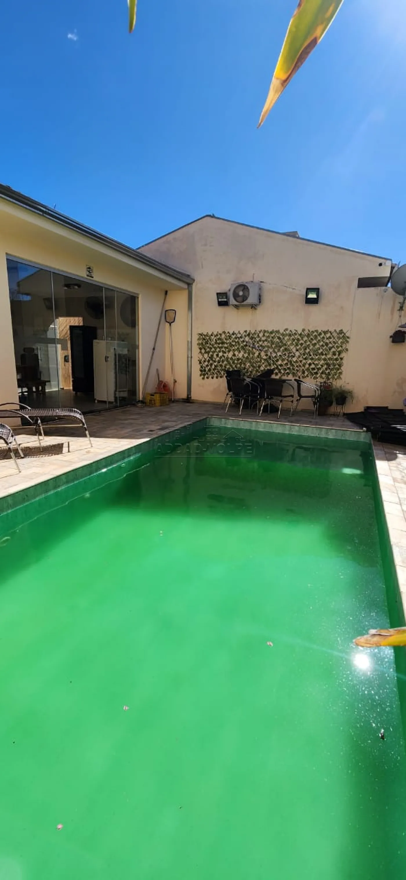 Área de lazer com piscina e varanda gourmet com fechamento em blindex.