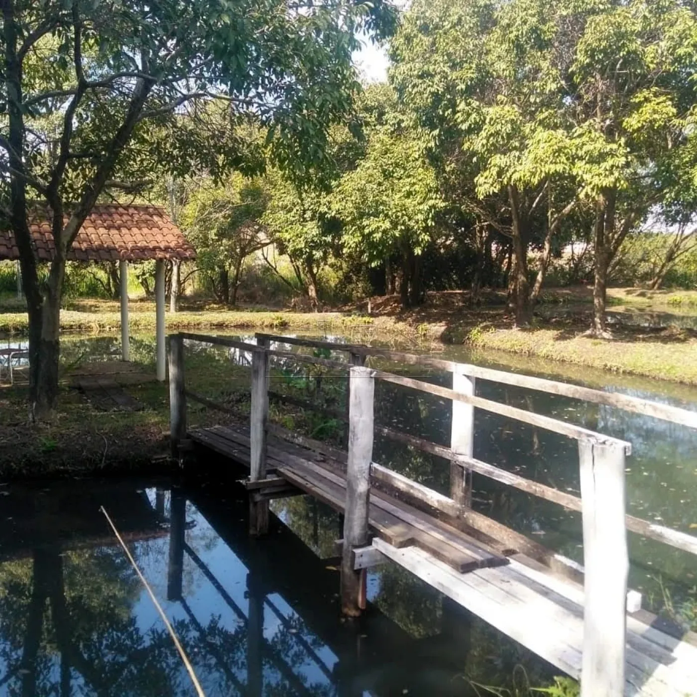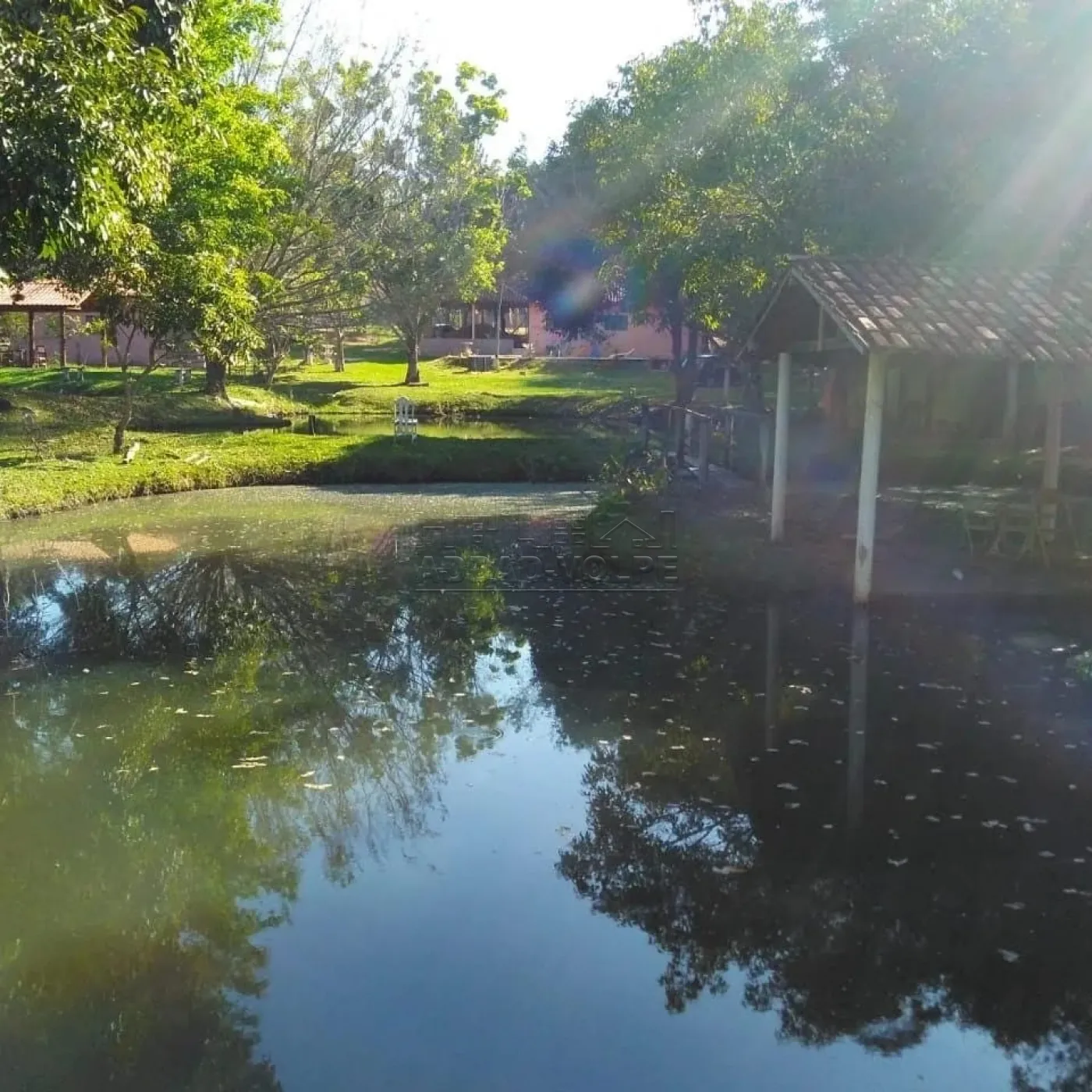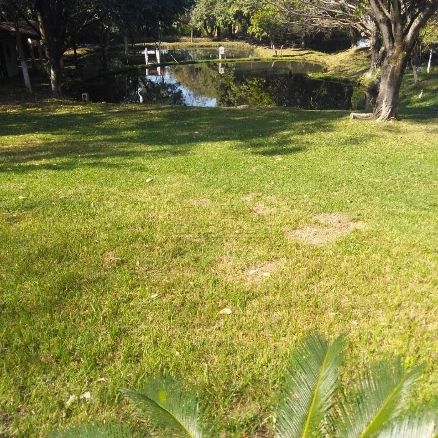 Linda chácara com vários lagos, muito verde, árvores, toda cercada.