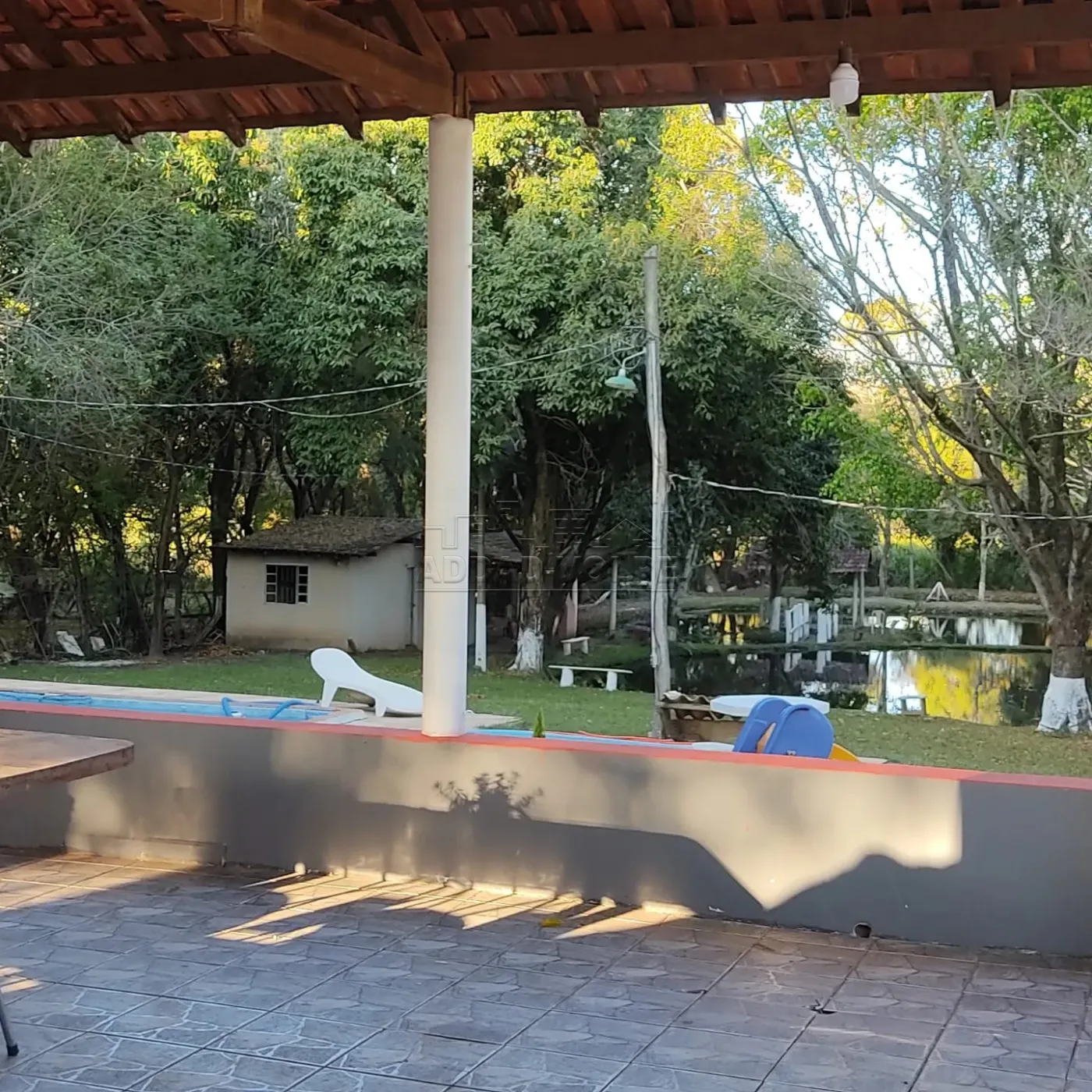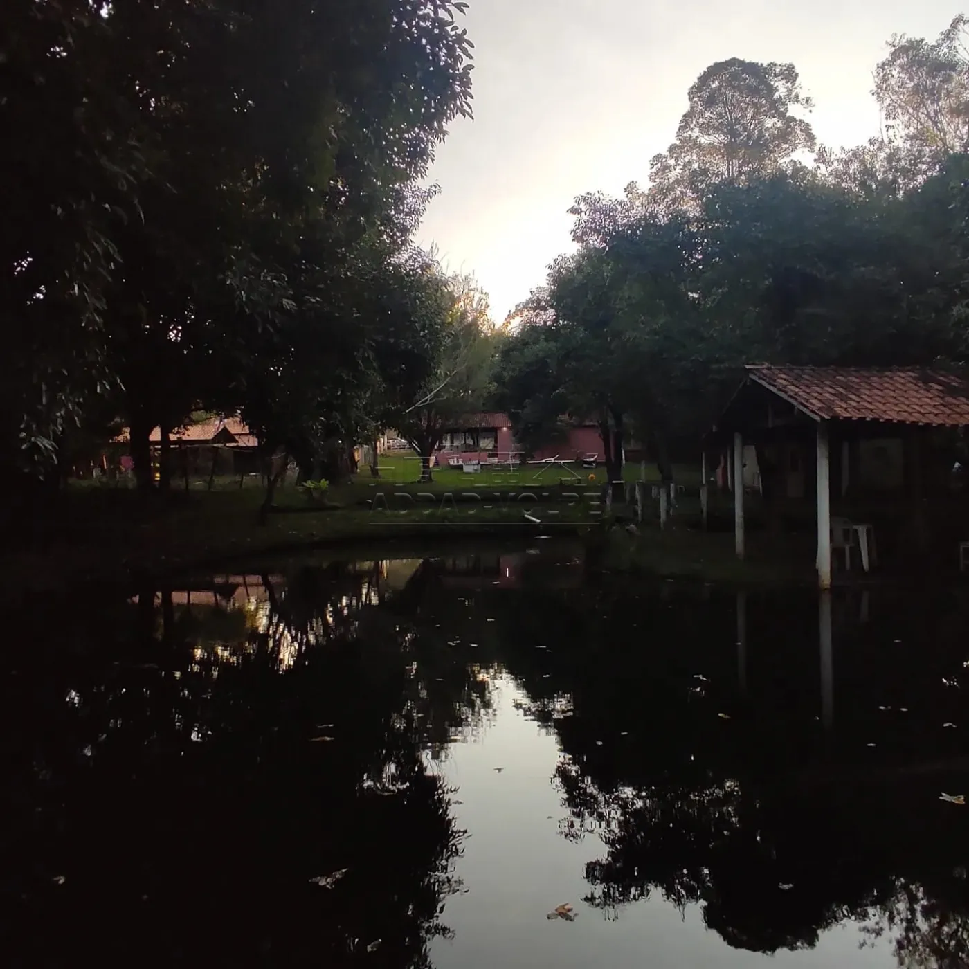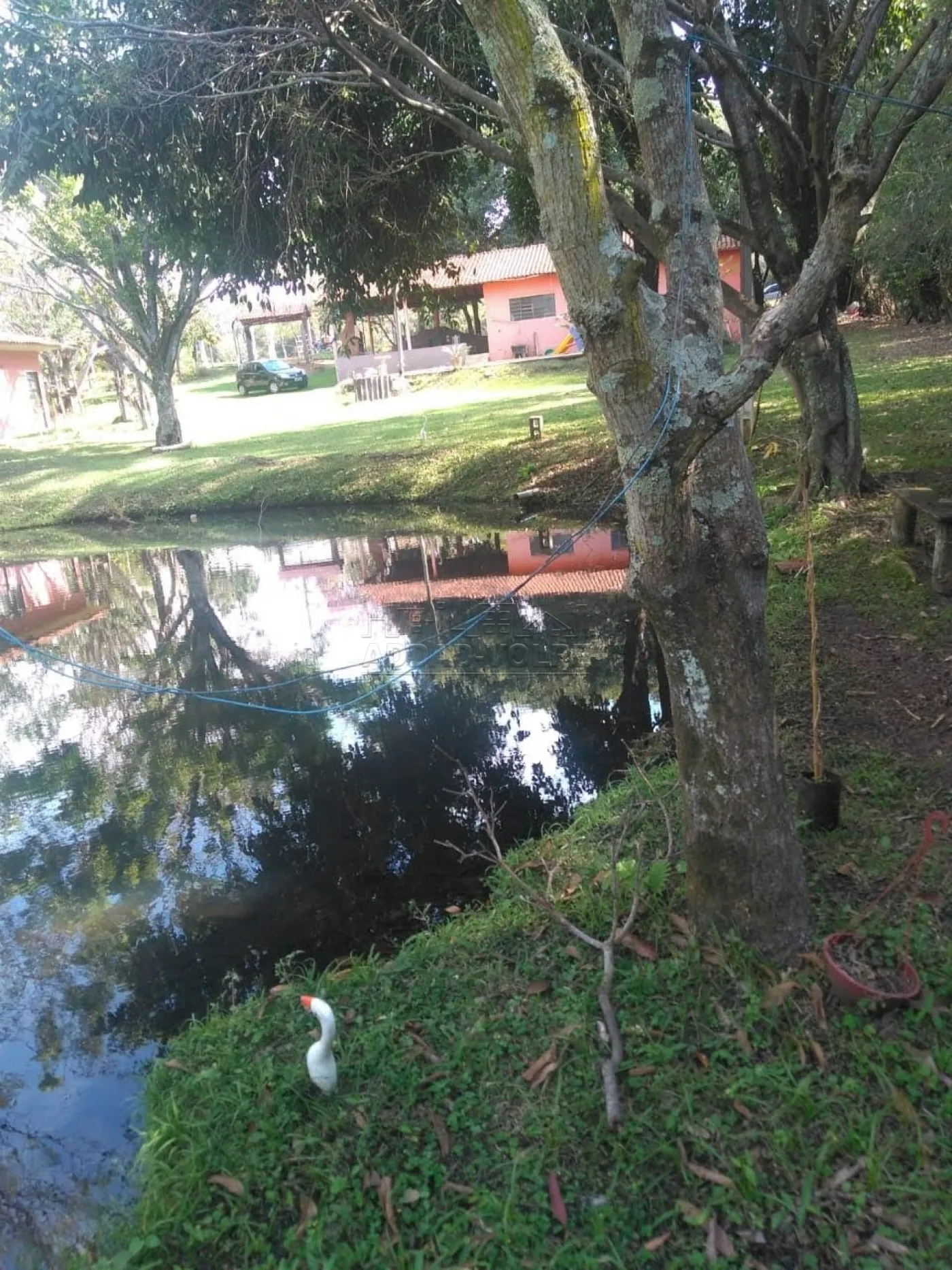 Linda chácara com vários lagos, muito verde, árvores, toda cercada.