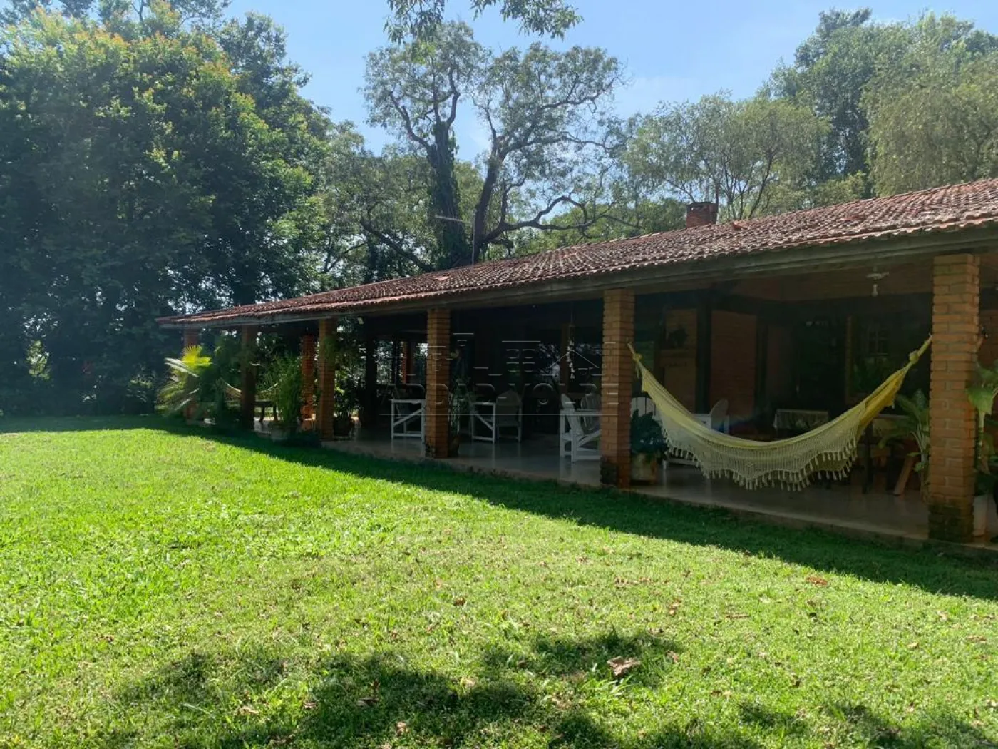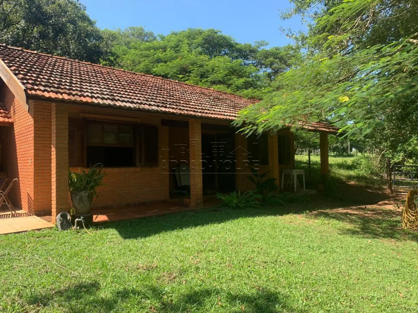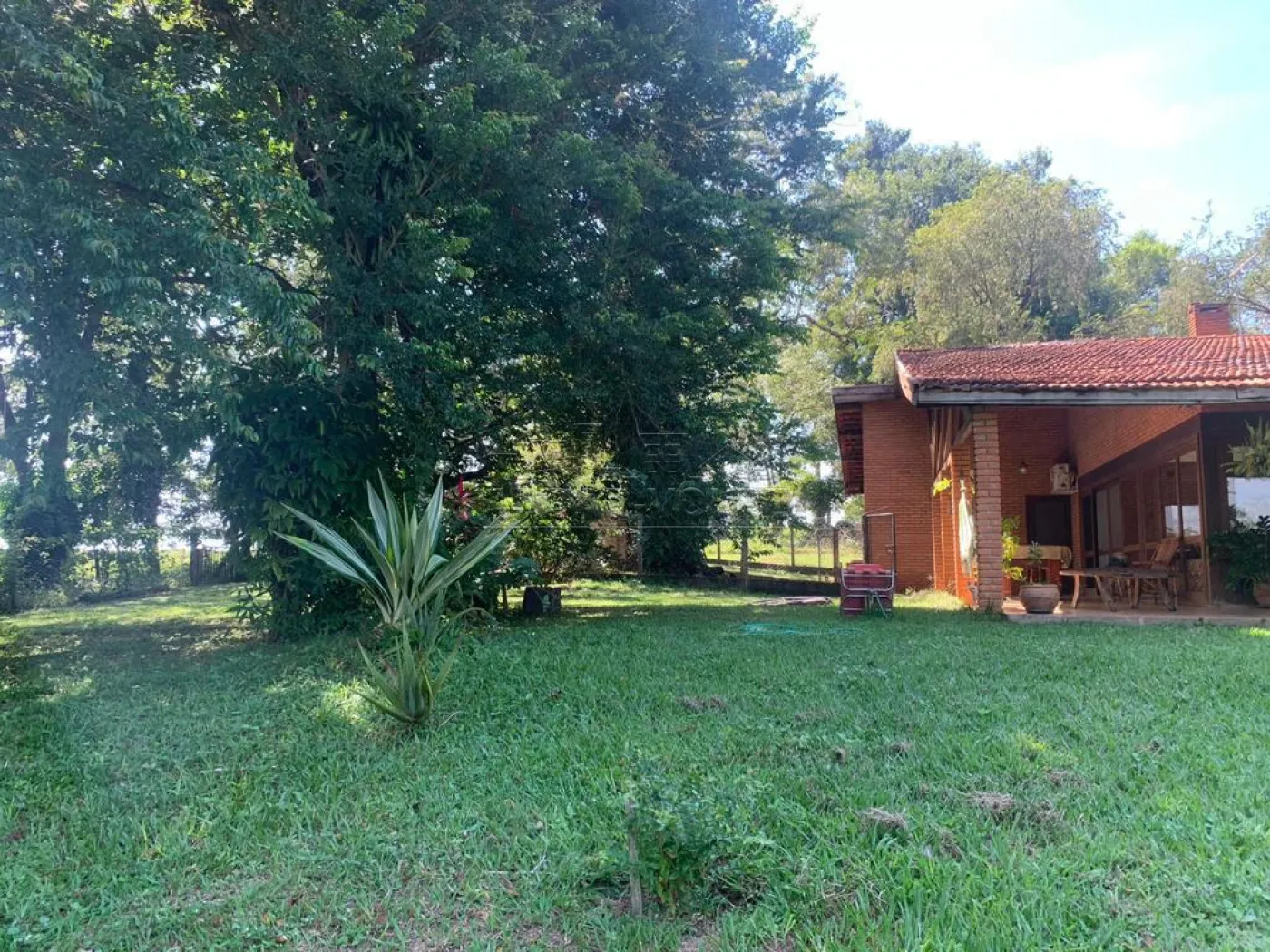 Casa de caseiro, varanda em toda fachada da casa principal, poço artesiano, árvores frutíferas, flamboyants, ipês, pasto e riozinho.