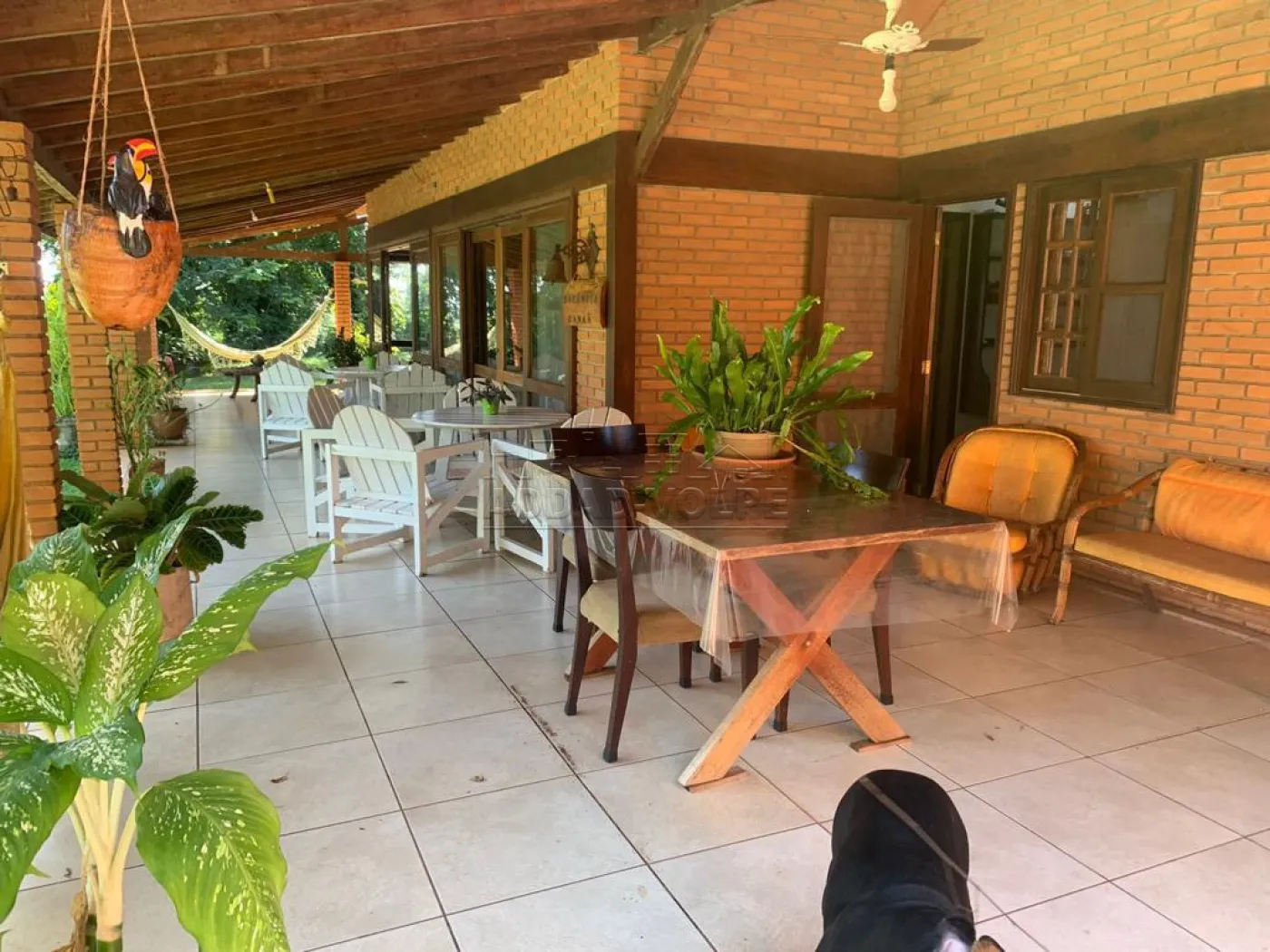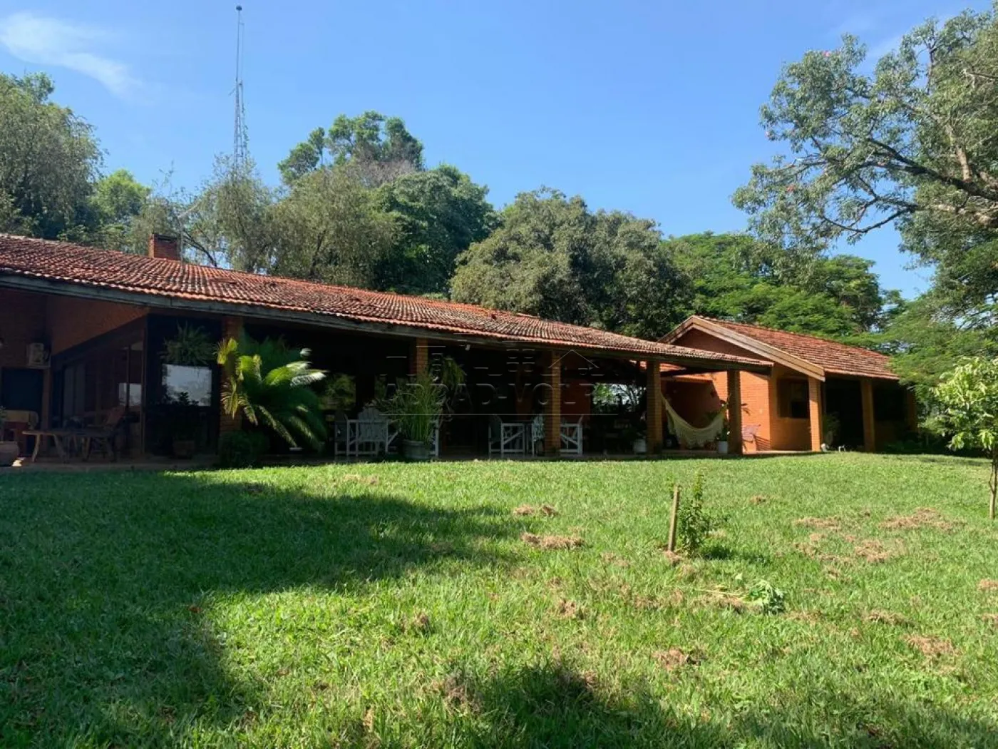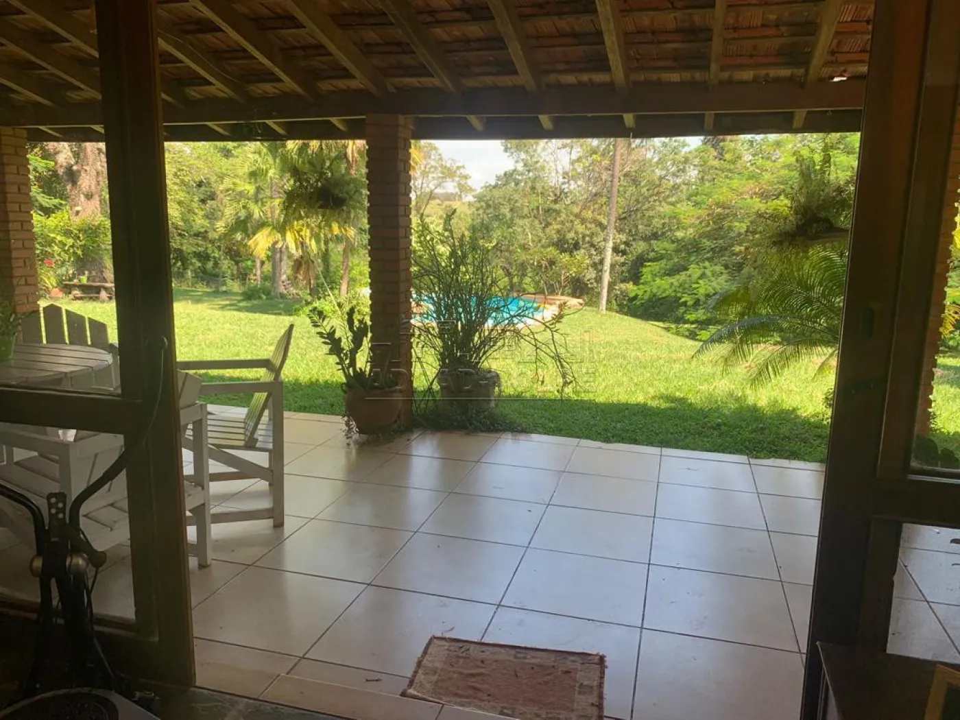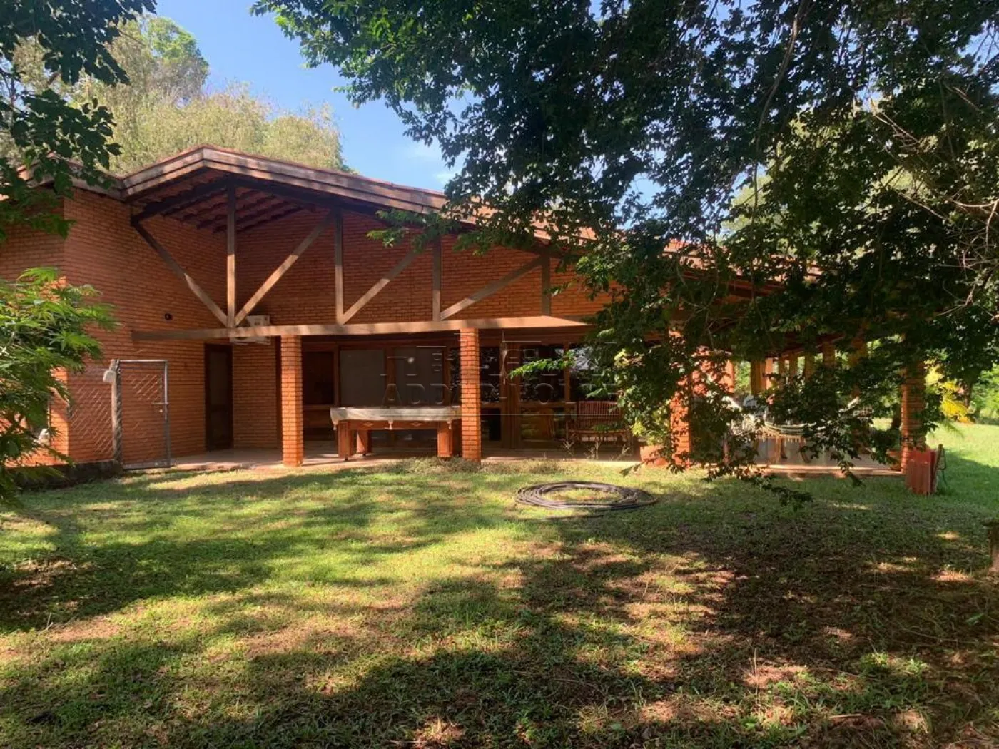 Casa de caseiro, varanda em toda fachada da casa principal, poço artesiano, árvores frutíferas, flamboyants, ipês, pasto e riozinho.