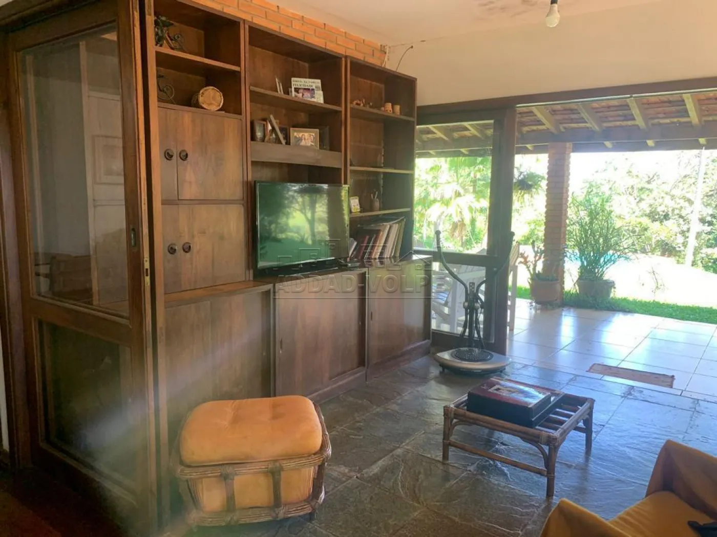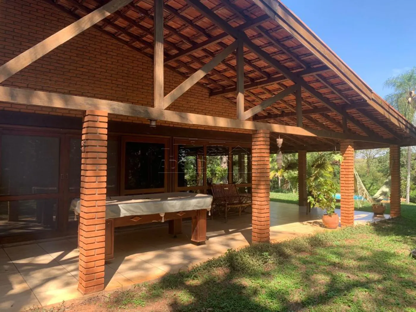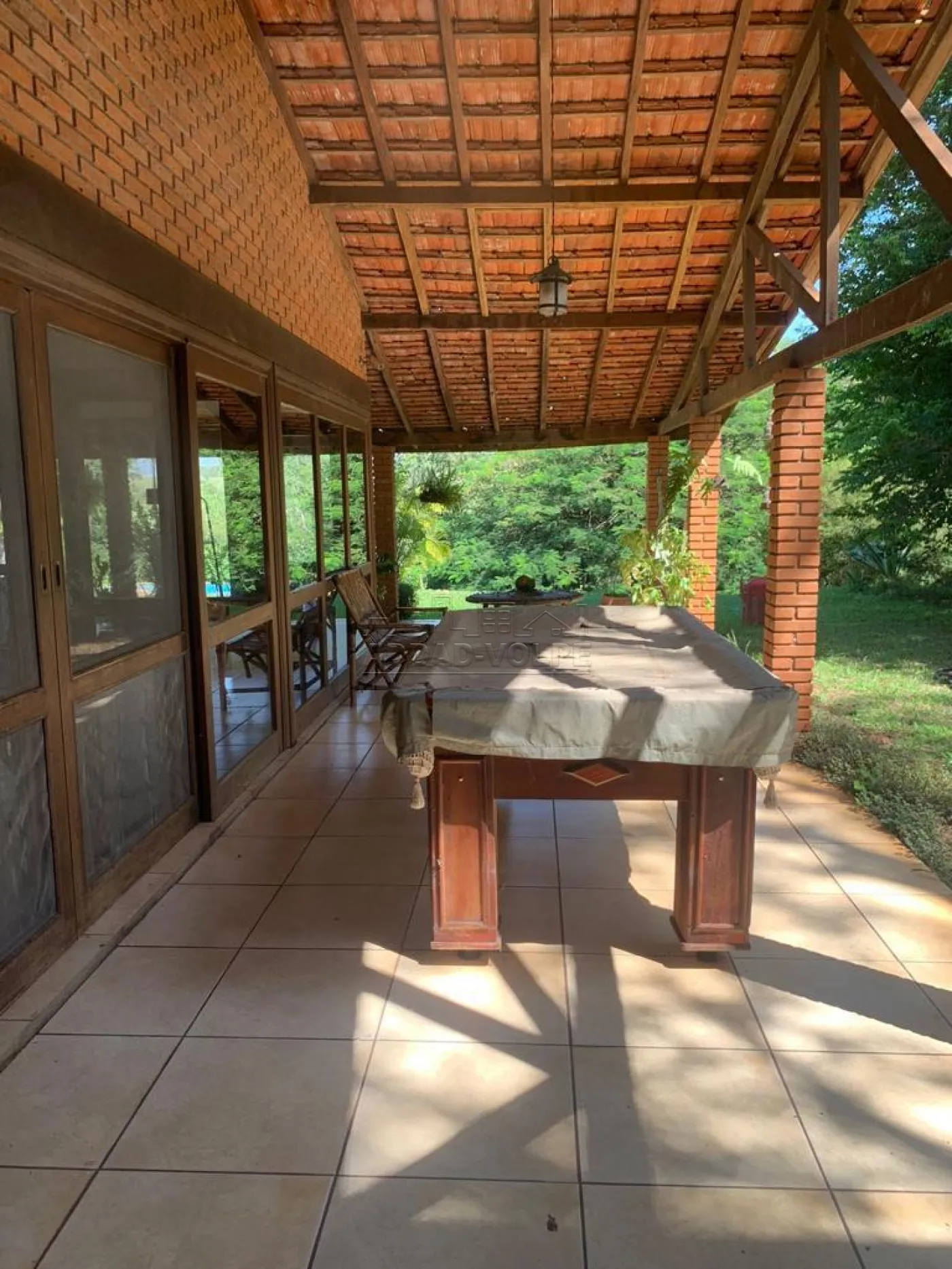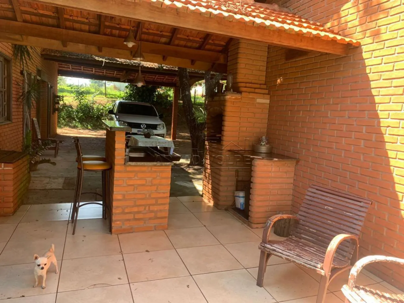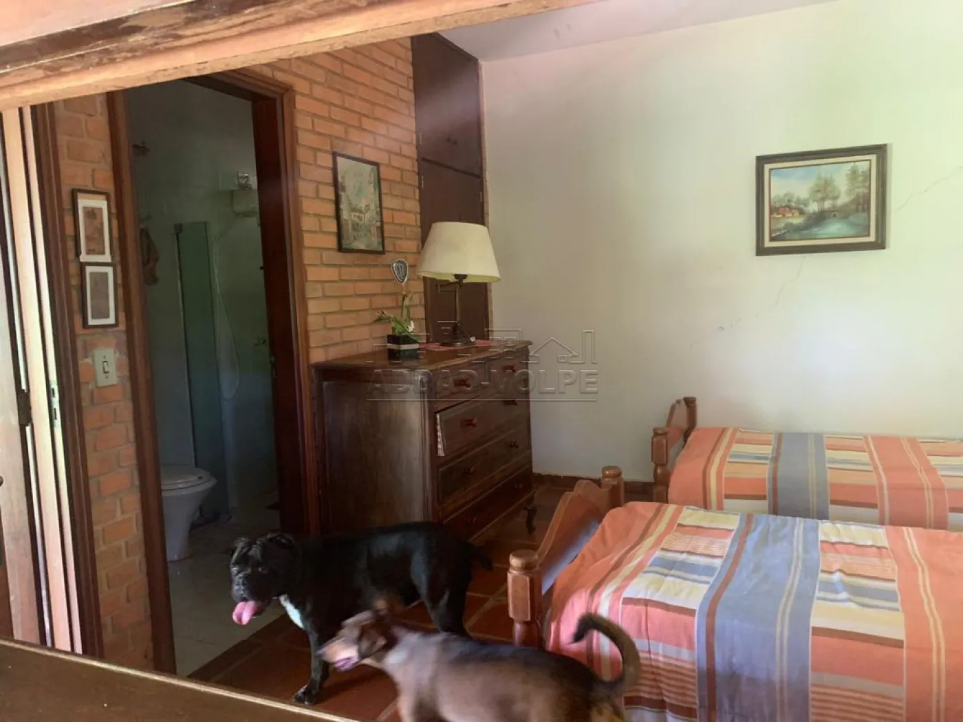 Casa principal construída com madeira de lei, armários, portas, e janelas teladas, lareira, churrasqueira, 4 salas com piso de peroba (tábua corrida), piscina de 90 mil litros, 4 canis de alambrado com alvenaria.