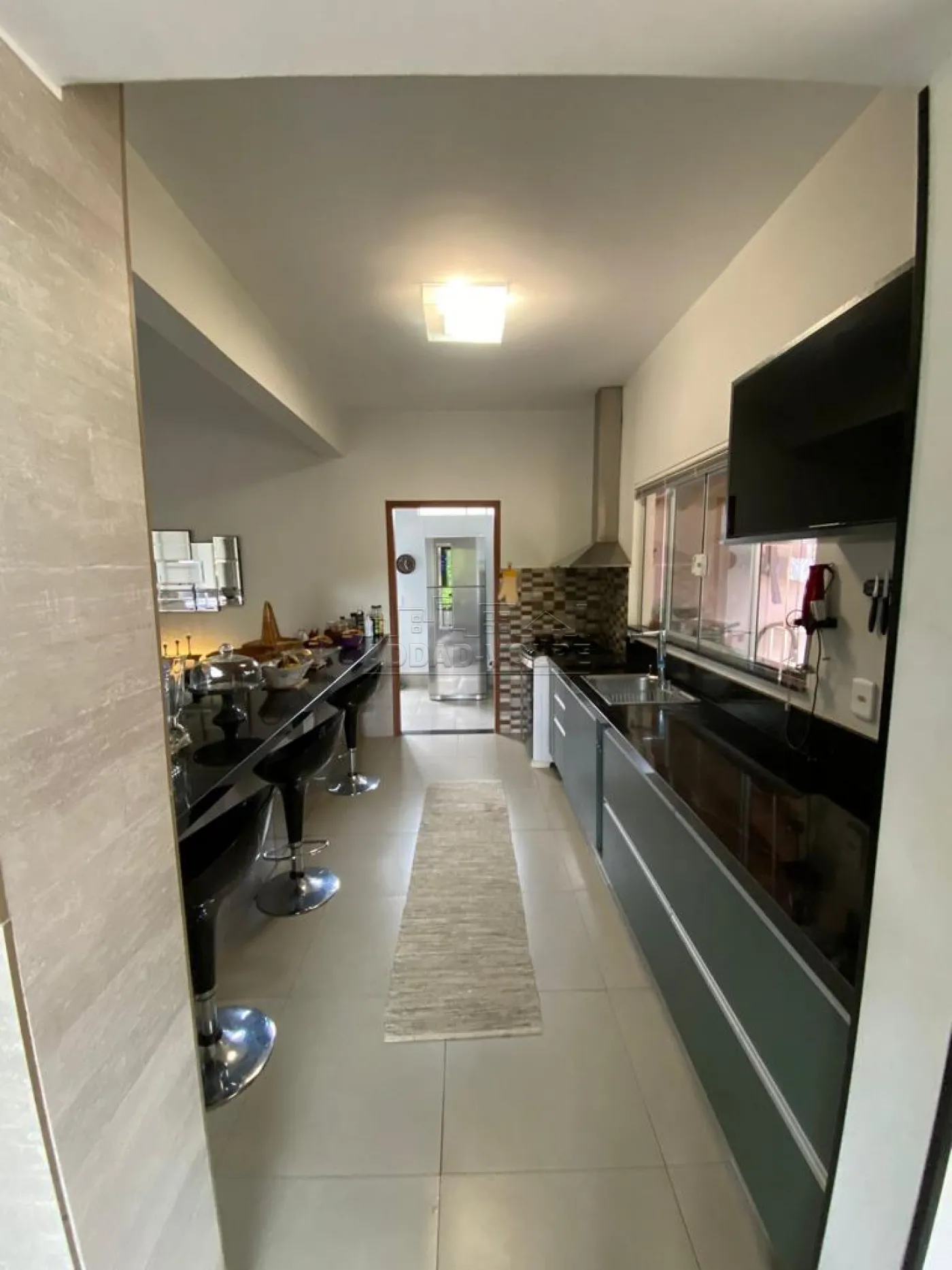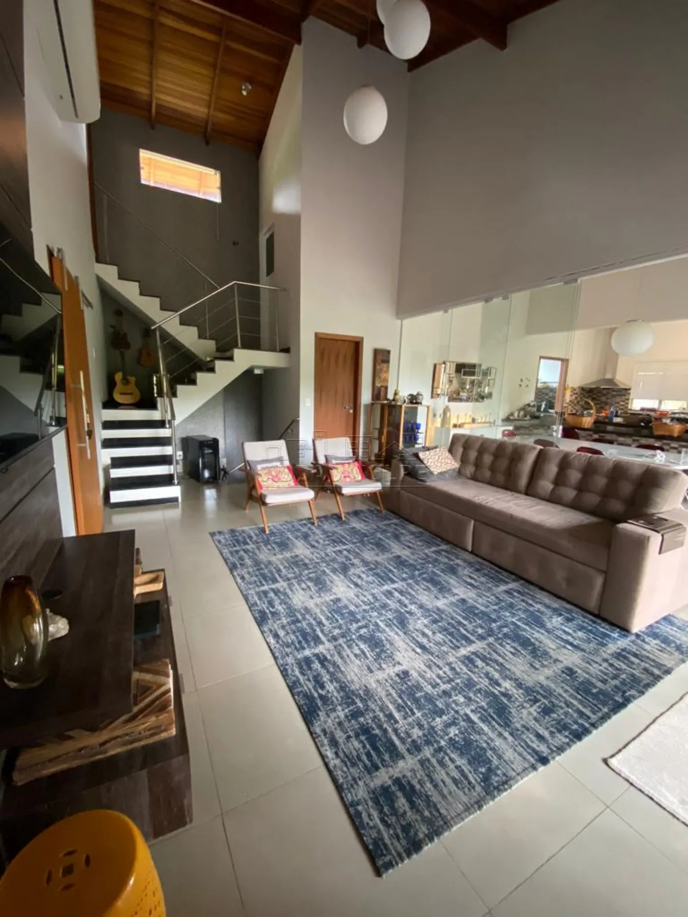 Residência térrea, completa em armários, climatizada. Três dormitórios, cozinha gourmet com choperia. Energia fotovoltaica, piscina aquecida, churrasqueira à gás no gourmet.